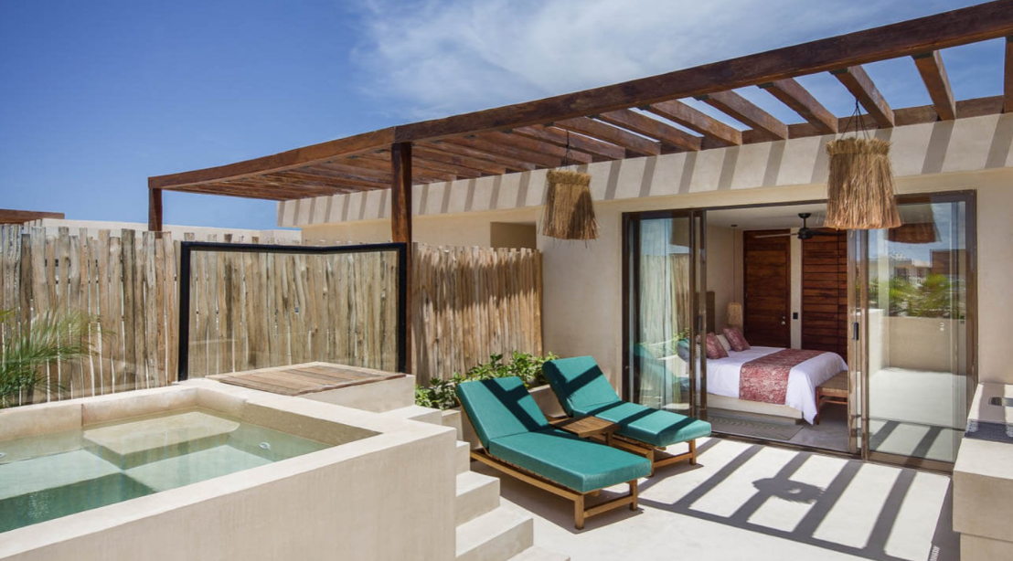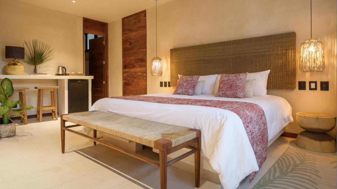 A tranquil hideaway designed for rest and reconnection, surrounded by lush jungle. This studio features a private pool that blends harmoniously with the natural surroundings, and décor inspired by the raw, mystical beauty of Tulum.